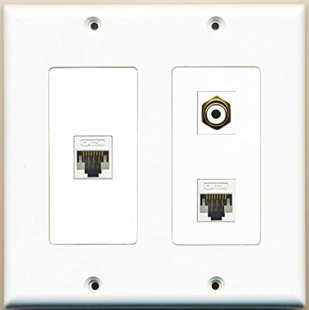 RiteAV - 1 Port RCA White 2 Port Cat5e Ethernet White - 2 Gang Wall Plate
