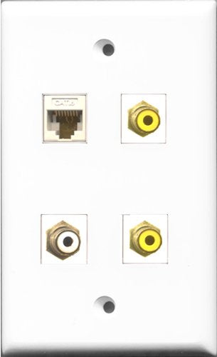 RiteAV 1 Port RCA White 2 Port RCA Yellow and 1 Port Cat6 Ethernet White Wall Plate