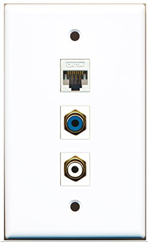 RiteAV - 1 Port RCA White and 1 Port RCA Blue and 1 Port Cat5e Ethernet White Wall Plate