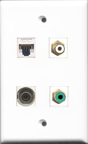 RiteAV 1 Port RCA White and 1 Port RCA Green and 1 Port 3.5mm and 1 Port Cat5e Ethernet White Wall Plate