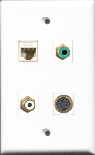 RiteAV 1 Port RCA White and 1 Port RCA Green and 1 Port S-Video and 1 Port Cat6 Ethernet White Wall Plate