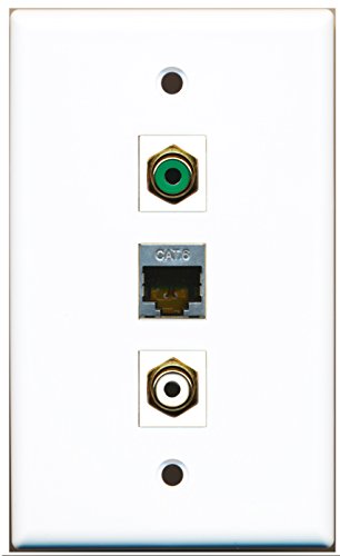 RiteAV - 1 Port RCA White and 1 Port RCA Green and 1 Port Shielded Cat6 Ethernet Wall Plate