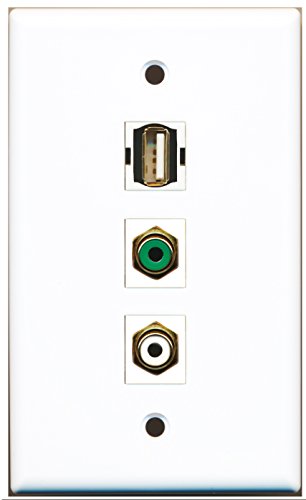 RiteAV - 1 Port RCA White and 1 Port RCA Green and 1 Port USB A-A Wall Plate