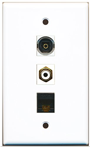 RiteAV - 1 Port RCA White and 1 Port Toslink and 1 Port Cat6 Ethernet Black Wall Plate