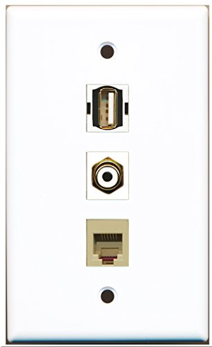 RiteAV - 1 Port RCA White and 1 Port USB A-A and 1 Port Phone RJ11 RJ12 Beige Wall Plate