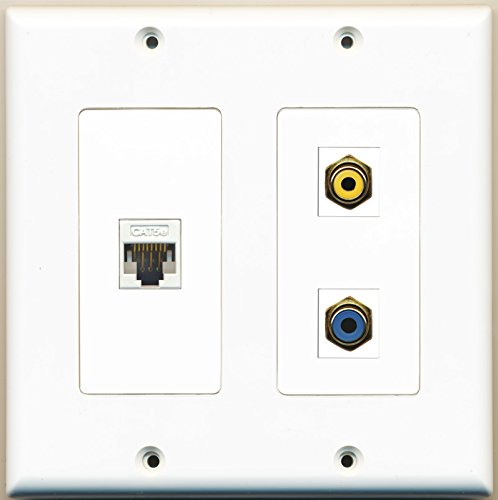 RiteAV - 1 Port RCA Yellow 1 Port RCA Blue 1 Port Cat5e Ethernet White - 2 Gang Wall Plate