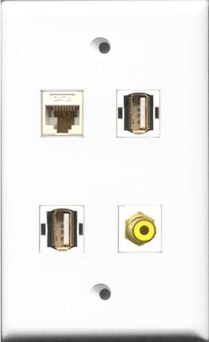 RiteAV 1 Port RCA Yellow 2 Port USB A-A and 1 Port Cat6 Ethernet White Wall Plate