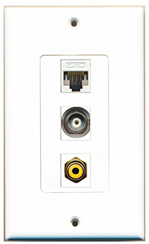 RiteAV - 1 Port RCA Yellow and 1 Port BNC and 1 Port Cat5e Ethernet White Decorative Wall Plate Decorative