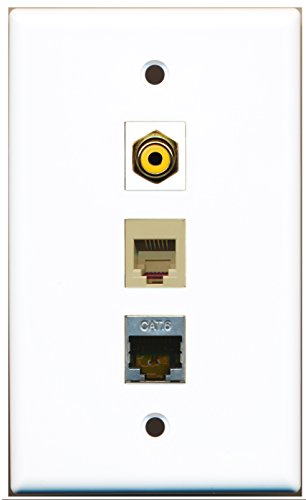 RiteAV - 1 Port RCA Yellow and 1 Port Phone RJ11 RJ12 Beige and 1 Port Shielded Cat6 Ethernet Wall Plate