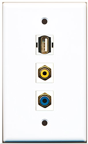 RiteAV - 1 Port RCA Yellow and 1 Port RCA Blue and 1 Port USB A-A Wall Plate
