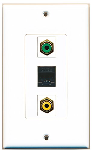 RiteAV - 1 Port RCA Yellow and 1 Port RCA Green and 1 Port Cat5e Ethernet Black Wall Plate Decorative