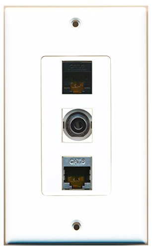 RiteAV - 1 Port Shielded Cat6 Ethernet and 1 Port 3.5mm and 1 Port Cat6 Ethernet Black Decorative Wall Plate Decorative