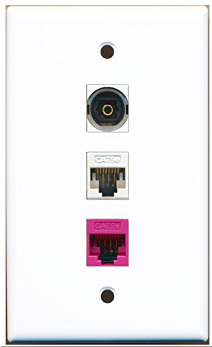 RiteAV - 1 Port Toslink 1 Cat5e Ethernet White 1 Cat5e Ethernet Pink Wall Plate
