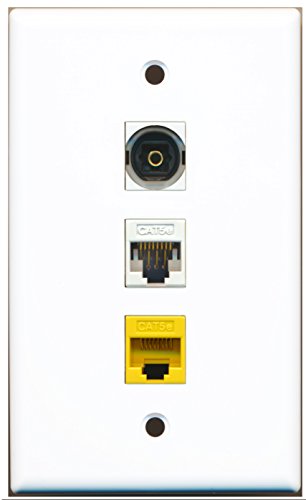 RiteAV - 1 Port Toslink 1 Cat5e Ethernet White 1 Cat5e Ethernet Yellow Wall Plate