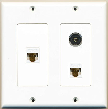 RiteAV - 1 Port Toslink 2 Port Cat6 Ethernet White - 2 Gang Wall Plate