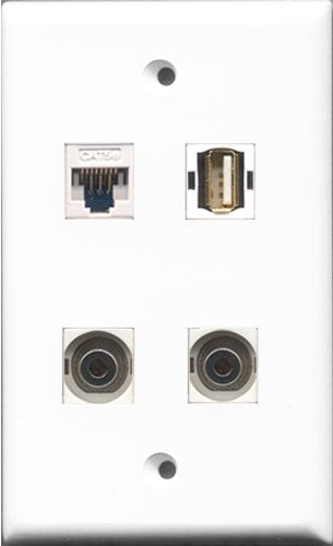 RiteAV 1 Port USB A-A 2 Port 3.5mm and 1 Port Cat5e Ethernet White Wall Plate