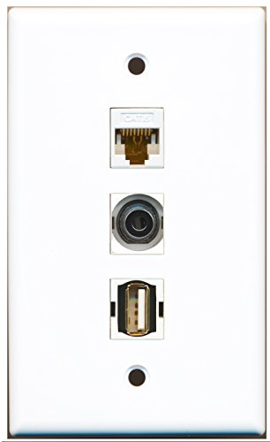 RiteAV - 1 Port USB A-A and 1 Port 3.5mm and 1 Port Cat6 Ethernet White Wall Plate