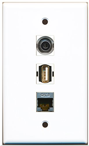 RiteAV - 1 Port USB A-A and 1 Port Shielded Cat6 Ethernet and 1 Port 3.5mm Wall Plate