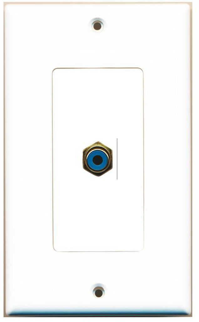 RiteAV - 1 RCA Blue for Subwoofer Audio Port Wall Plate Decorative - White