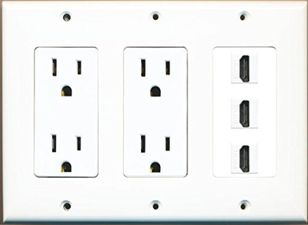 RiteAV 15 Amp 125V Power Outlets x 2 and 3 HDMI Triple Gang Wall Plate White