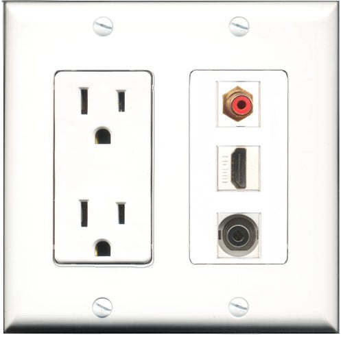 RiteAV - 15 Amp Power Outlet 1 Port HDMI 1 Port RCA Red 1 Port 3.5mm Decorative Wall Plate