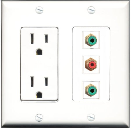 RiteAV - 15 Amp Power Outlet 1 Port RCA Red 2 Port RCA Green Decorative Wall Plate