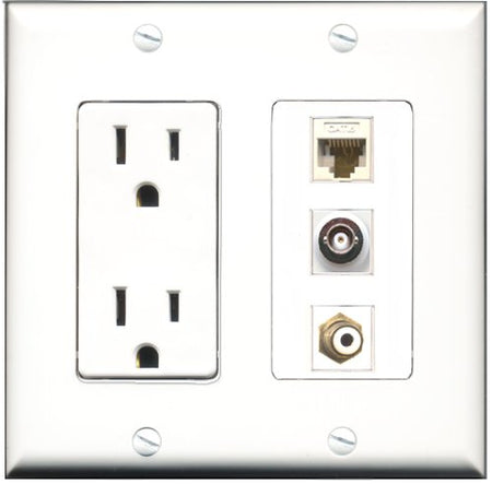 RiteAV - 15 Amp Power Outlet 1 Port RCA White 1 Port RCA Yellow 1 Port BNC Decorative Wall Plate