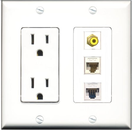 RiteAV - 15 Amp Power Outlet 1 Port RCA Yellow 1 Port Cat5e Ethernet White 1 Port Cat6 Ethernet Ethernet White Decorative Wall Plate