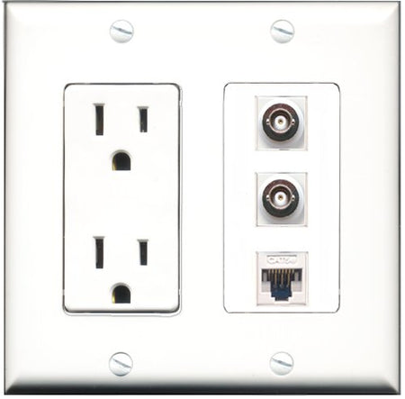 RiteAV - 15 Amp Power Outlet 2 Port BNC 1 Port Cat5e Ethernet White Decorative Wall Plate
