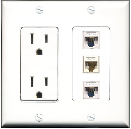 RiteAV - 15 Amp Power Outlet 2 Port Cat5e Ethernet White 1 Port Cat6 Ethernet Ethernet White Decorative Wall Plate
