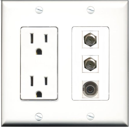 RiteAV - 15 Amp Power Outlet 2 Port Coax 1 Port 3.5mm Decorative Wall Plate