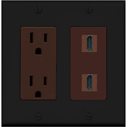 RiteAV - 15 Amp Power Outlet 2 Port HDMI Decorative Wall Plate - Black/Brown