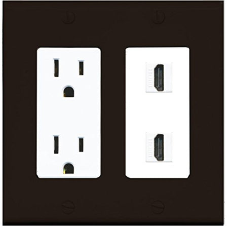 RiteAV - 15 Amp Power Outlet 2 Port HDMI Decorative Wall Plate - Brown/White