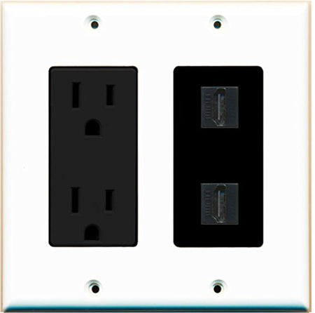 RiteAV - 15 Amp Power Outlet 2 Port HDMI Decorative Wall Plate - White/Black