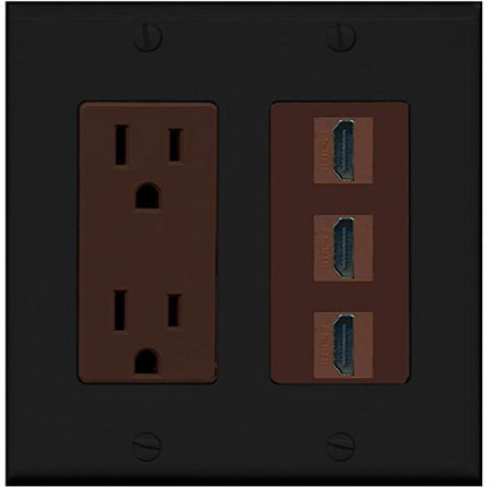 RiteAV - 15 Amp Power Outlet 3 Port HDMI Decorative Wall Plate - Black/Brown