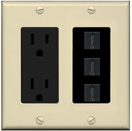 RiteAV - 15 Amp Power Outlet 3 Port HDMI Decorative Wall Plate - Ivory/Black
