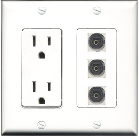 RiteAV - 15 Amp Power Outlet 3 Port Toslink Decorative Wall Plate
