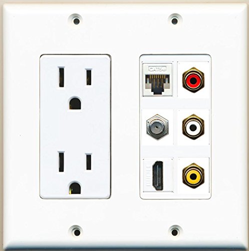 RiteAV 15 Amp Power Outlet HDMI Cat5E Coax Cable TV Composite Wall Plate White