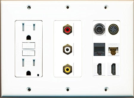 RiteAV 15A GFCI Outlet 2 HDMI Cat6 Composite 3.5mm Phone S-Video Wall Plate