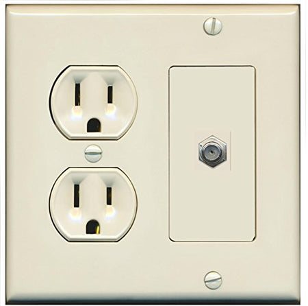 RiteAV (2 Gang Decorative) 15 Amp Round Power Outlet Coax Cable TV Wall Plate - Light Almond