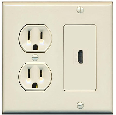 RiteAV (2 Gang Decorative) 15 Amp Round Power Outlet HDMI TV Wall Plate - Light Almond