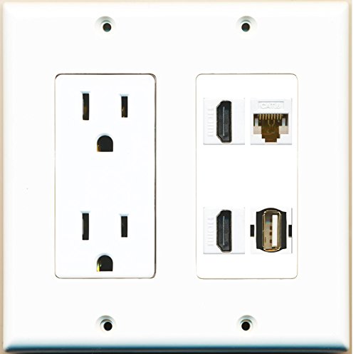 RiteAV (2 Gang Decorative) 15A Power Outlet 2 HDMI Cat6 White USB Wall Plate