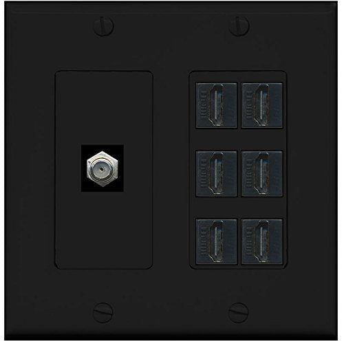 RiteAV - (2 Gang Decorative) 6 HDMI Black Coax Black Wall Plate Black