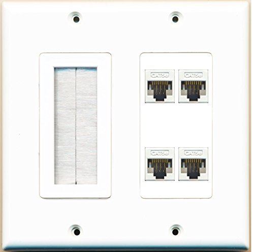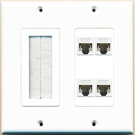 RiteAV (2 Gang Decorative) Mesh-Brush 4 Cat5e White Wall Plate White