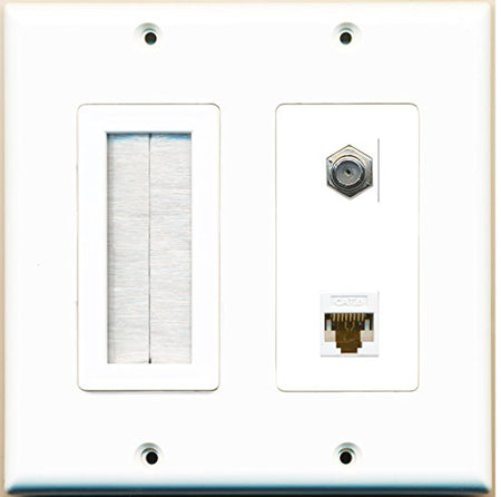 RiteAV (2 Gang Decorative) Mesh-Brush Coax Cat6 White Wall Plate White