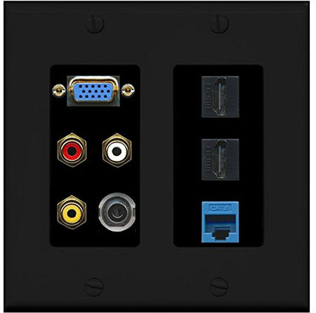 RiteAV (2 Gang) Svga Composite 3.5mm 2 HDMI Cat6 Blue Wall Plate Black