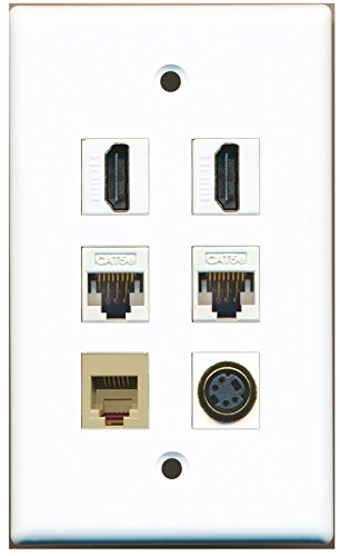 RiteAV - 2 HDMI 1 Port Phone RJ11 RJ12 Beige 1 Port S-Video 2 Port Cat5e Ethernet White Wall Plate