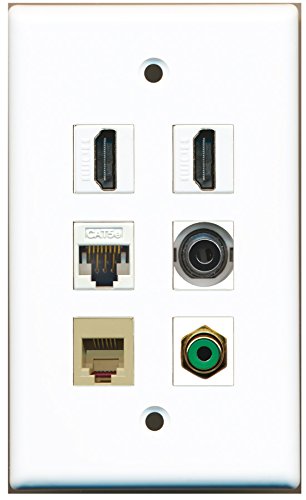 RiteAV - 2 HDMI 1 Port RCA Green 1 Port Phone RJ11 RJ12 Beige 1 Port 3.5mm 1 Port Cat5e Ethernet White Wall Plate