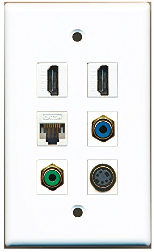 RiteAV - 2 HDMI 1 Port RCA Green 1 Port RCA Blue 1 Port S-Video 1 Port Cat5e Ethernet White Wall Plate