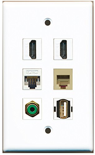 RiteAV - 2 HDMI 1 Port RCA Green 1 Port USB A-A 1 Port Phone RJ11 RJ12 Beige 1 Port Cat5e Ethernet White Wall Plate